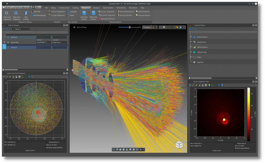 突破了传统序列与非序列光线追迹的局限,允许在单一模型文件中定义、管理和优化任意数量的独立光路序列。这一特性对于多光路系统(如干涉仪、复杂成像系统)的设计带来了根本性变革,使得子系统(子序列)可被独立优化,同时直观分析其对整体性能的影响。该架构同样为序列鬼像分析提供了强大且高效的内置支持。