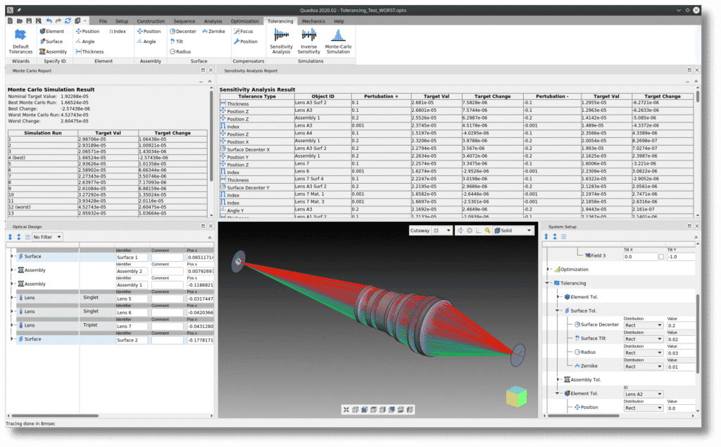 软件能够精确建模光学元件与机械装配体之间的复杂依赖关系,执行贴合实际生产装配条件的公差分析。这不仅可预测系统的“实建性能”,更能反向指导设计,优化系统对制造公差的鲁棒性。